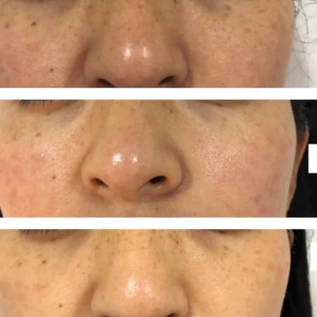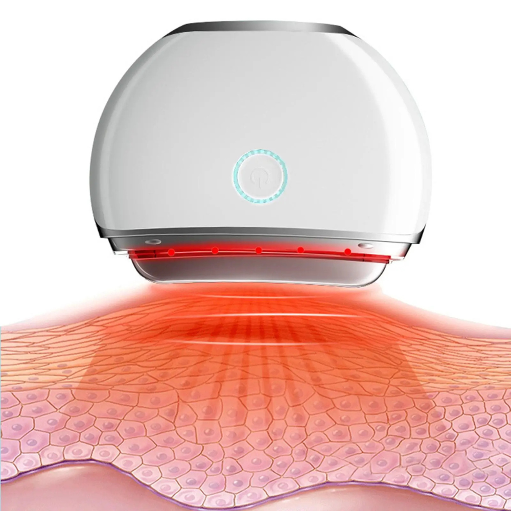 Red light therapy and gentle vibration reduce redness and tension.