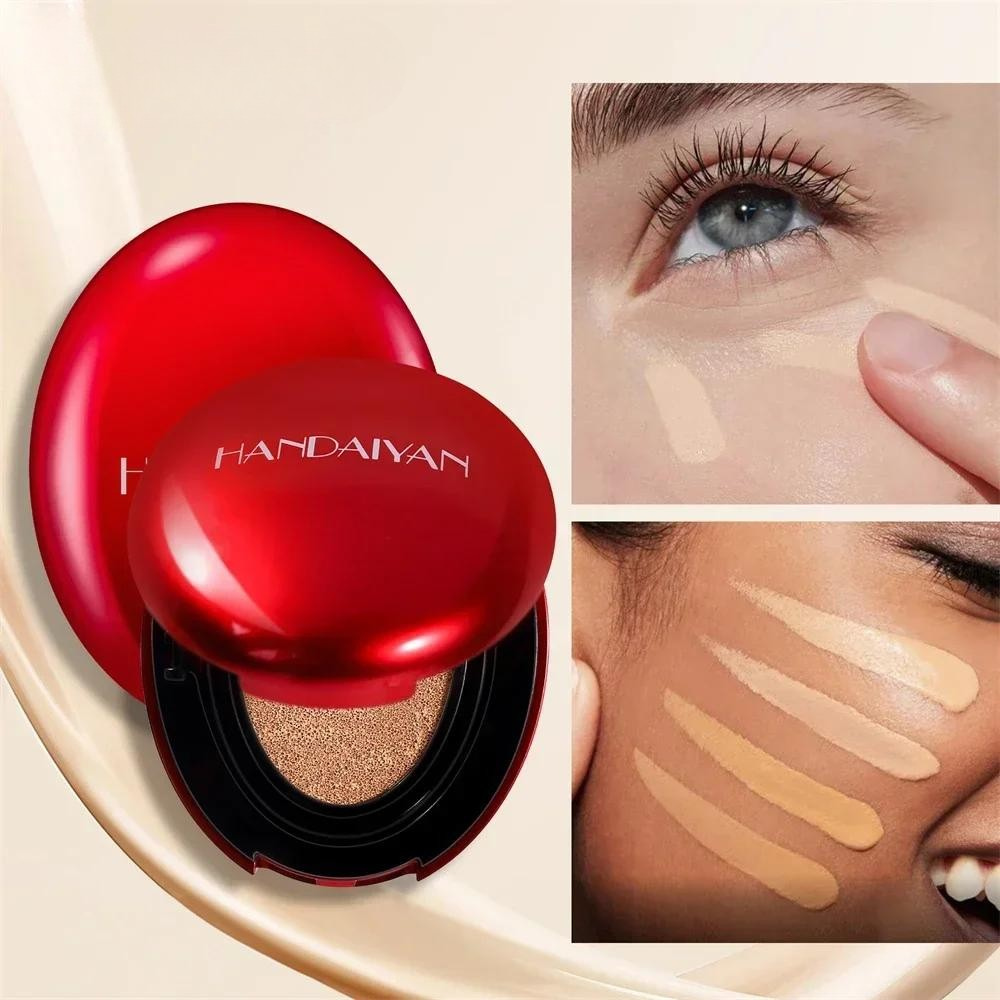 Press the puff gently into the cushion, then tap it evenly onto your skin. Start from the center of your face and blend outward. For extra coverage, layer lightly where needed—no heavy buildup required.