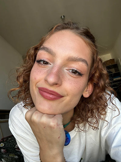 To create natural freckles, dot the pen lightly across areas where the sun would naturally hit, like your nose and cheeks. Dab with your fingertips to blend, adding more dots to build up for a bolder look if desired. It generally lasts 7-10 hours.